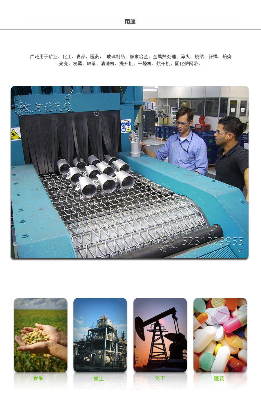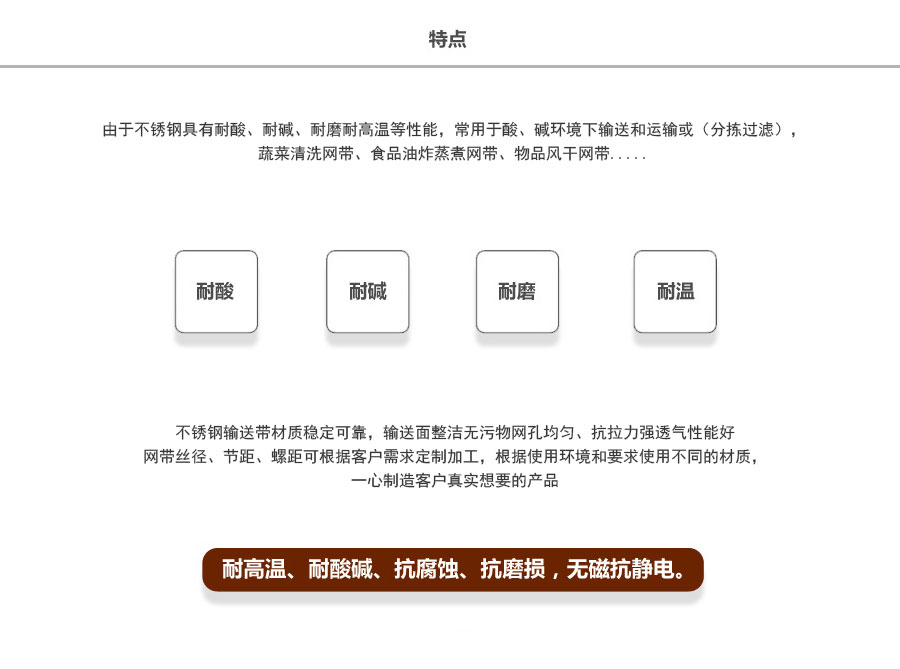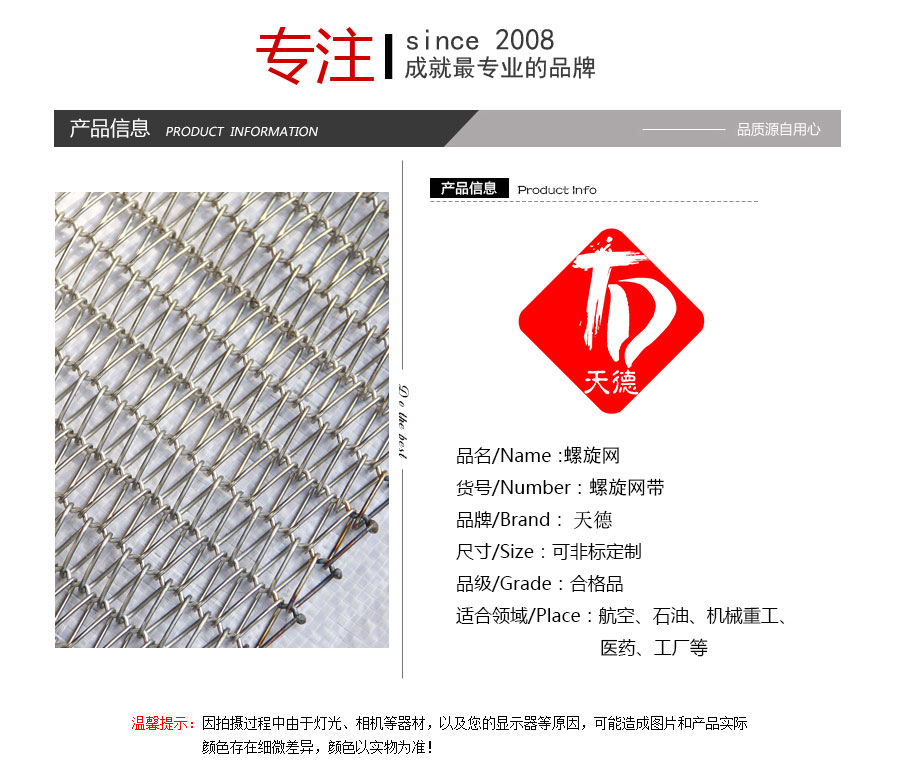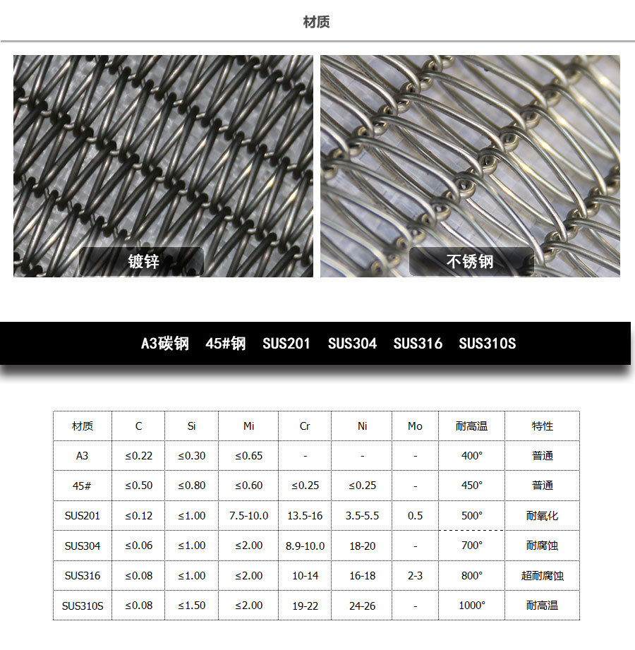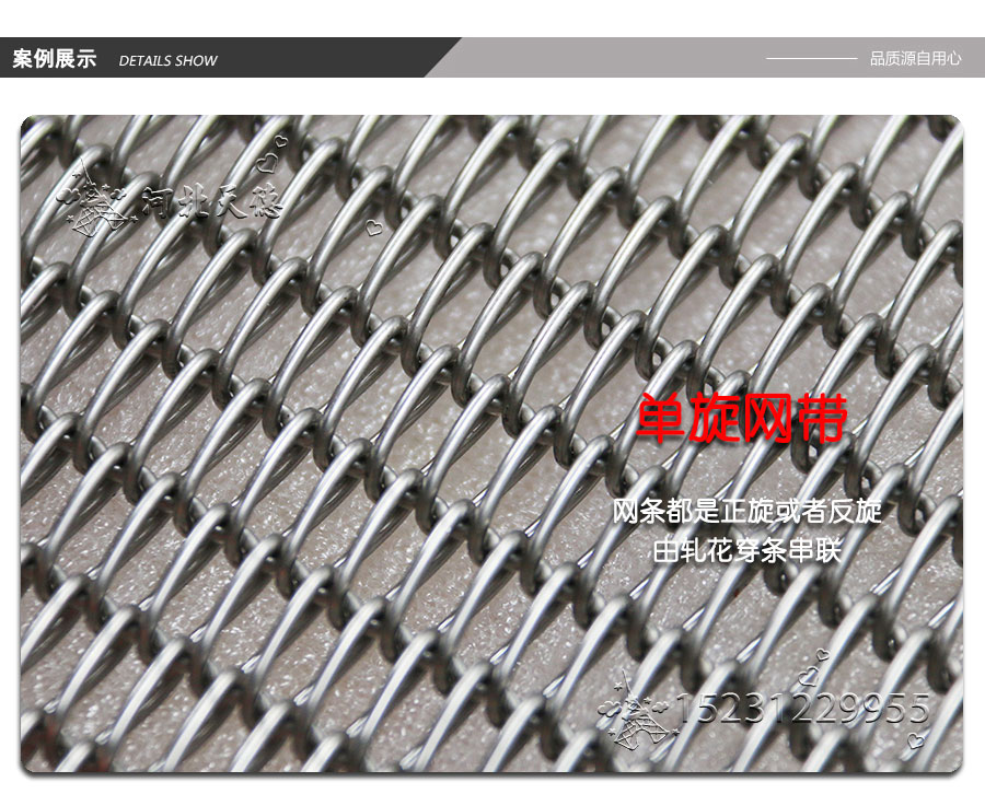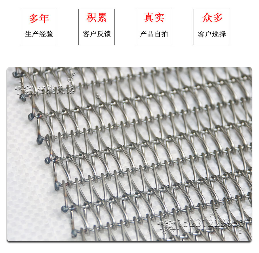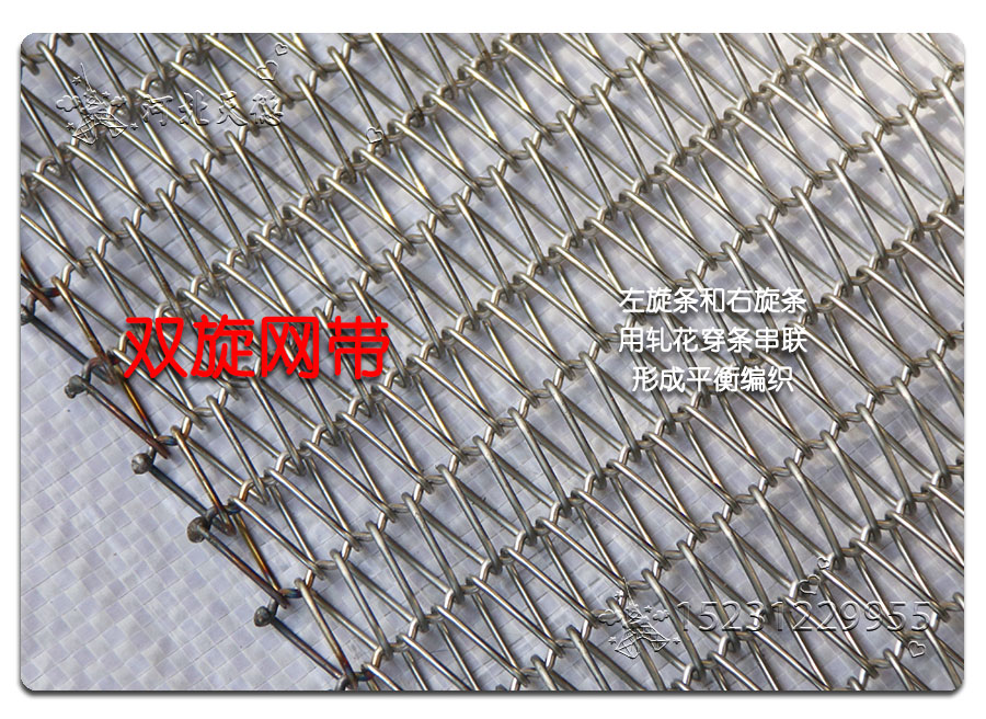 Straight rod type: made up by straight rod, left and right spiral wire, this type belt's hole size is small. distance of hole is uniformity,it can make the belts running smoothly. compared with heavy duty belts, double spiral wire belt always used in the small size and light weight object's conveyor line.