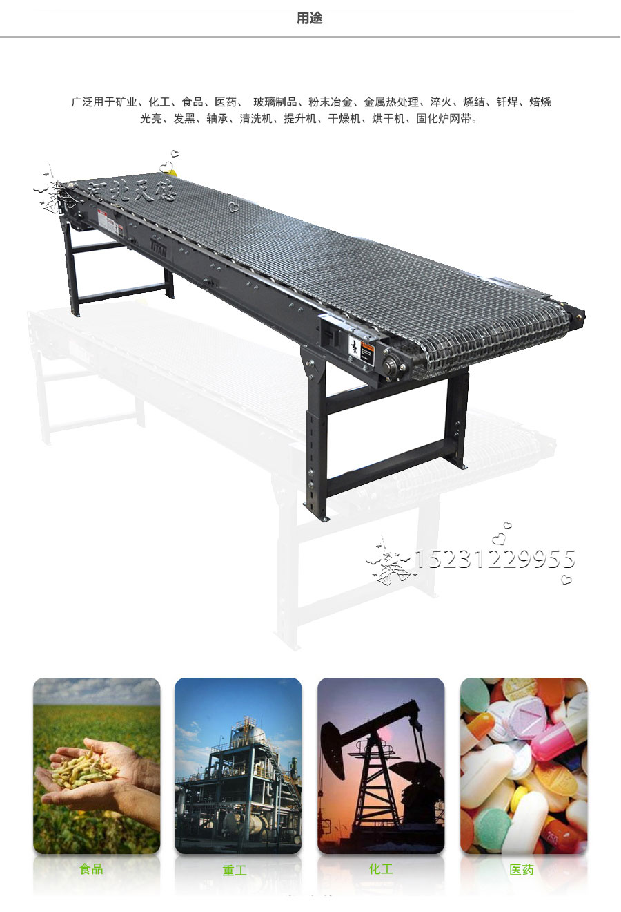 長(zhǎng)城網(wǎng)帶應(yīng)用:做洗滌、干燥、冷 卻、熱處理的輸送線