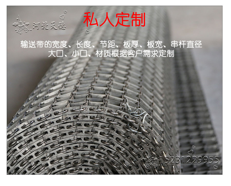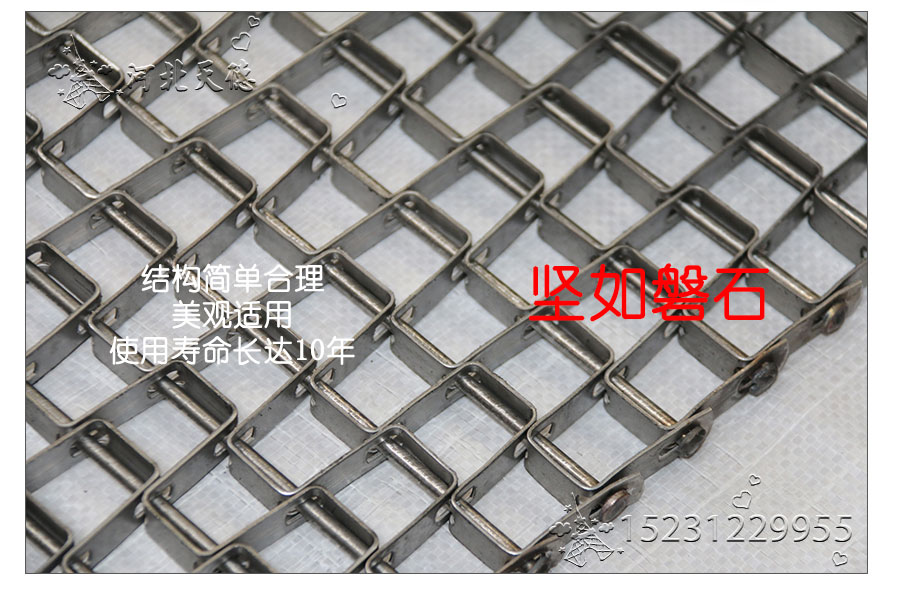 長(zhǎng)城網(wǎng)帶屬于非標(biāo)準(zhǔn)件,我們將根據(jù)你提供的板寬、板厚、上口寬度、下口寬度、串桿直徑、節(jié)距、材質(zhì)、邊緣處理方式等數(shù)據(jù)核算成本和制作.