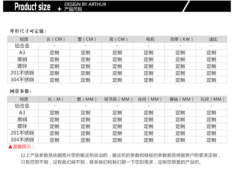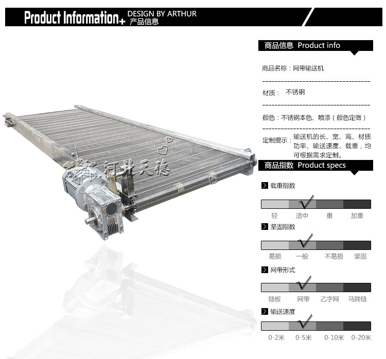 可根據客戶需求進行設計私人訂制,如果您需要更詳細的網帶輸送機/食品網帶輸送機/網帶輸送線/網帶流水線產品信息,解決方案和報價,請聯系客服,我們會為您提供熱情的服務。