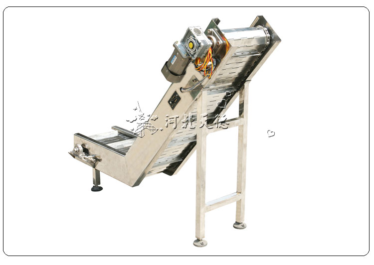 鏈板輸送機可以滿足飲料貼標、灌裝、清洗等設備的單列輸送的要求,同樣也可以使單列變成多列并行走緩慢,從而產生儲存量,滿足殺 菌 機、儲瓶臺、冷瓶機的大量供料的要求。鏈板輸送機可以將兩條鏈板輸送線的頭尾部做成重疊式的混合鏈,使得瓶(罐)體處于動態過度狀態,使輸送線上不滯留瓶子,可以滿足空瓶及實瓶的壓力和無壓力輸送。鏈板輸送機廣泛用于食品生產線、罐頭、藥品、飲料、化妝品和洗滌用品、紙制品、調味品及煙草等的自動輸送、分配和包裝的連線輸送。